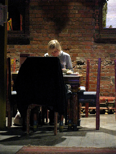 Something I always made an effort to do, back in the days when I was a leader in the church (whether officially or unofficially) was to invite visiting singles out to lunch with the group. Not only was it a time for me to start getting to know newcomers, but it was also a time for me to make them feel included, make their day not quite so “alone.” And that’s been one of my problems in recent years with trying to find the motivation to go to church. At the church where I’m still officially a member (but haven’t attended in at least a year), I was going to a Sunday school class where everyone else was at least fifteen to twenty (plus) years older than me, married, with teenagers, twentysomethings, or even offspring my age. We had great theological discussions in that class, but I never really felt like I was a part. I was just allowed to be there. Then, I would go sing in the choir—because it’s much less obvious, to me and everyone else, that I’m alone when I’m sitting amongst 40-or-so other people in a homogeneous blob of green choir robes. Afterward, I would go back to the choir room, disrobe, get my stuff, and leave. I might pick something up on the way home, or I might have actually planned ahead and had a meal in the Crock-Pot. But I knew I would be eating it by myself.