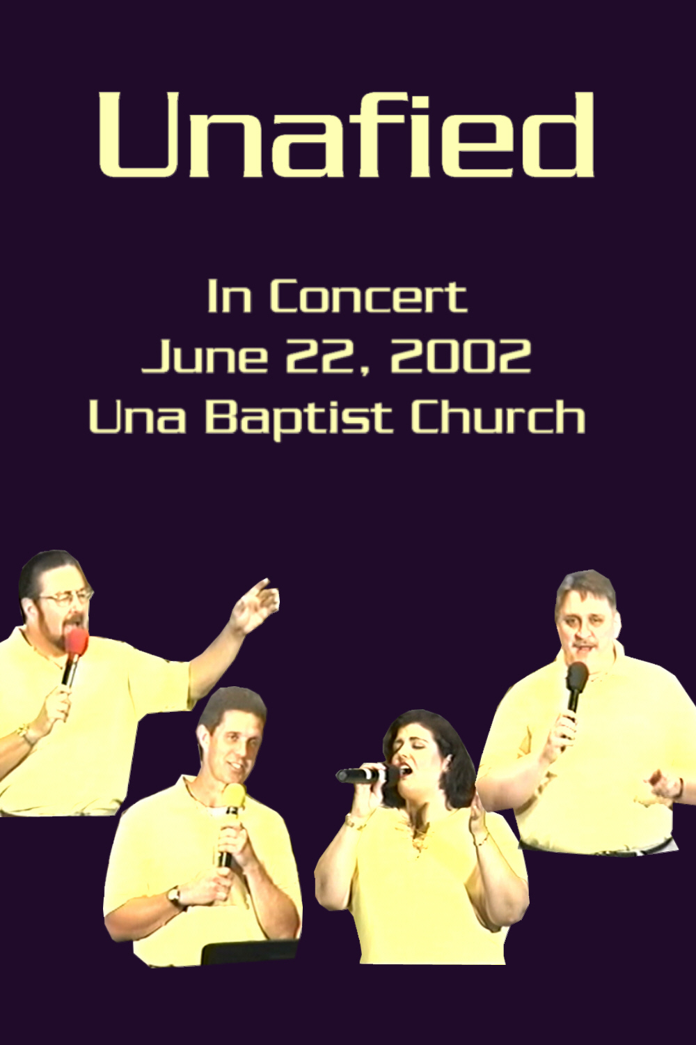 I know, you’re scratching your head thinking, huh? I almost put this one back when I opened my eyes and saw I’d pulled it, but for this to be an honest game, I had to go with what I actually pulled. Unafied is the Southern Gospel Quartet I sang with for a couple of years. The name, Unafied, came from the name of the church we all attended: Una Baptist Church right here in Nashville. This concert was performed on June 22, 2002 at our church. Here we are, singing the Gaither Vocal Band song “Hide Thou Me” (you’ll have to crank up the sound to actually hear it):