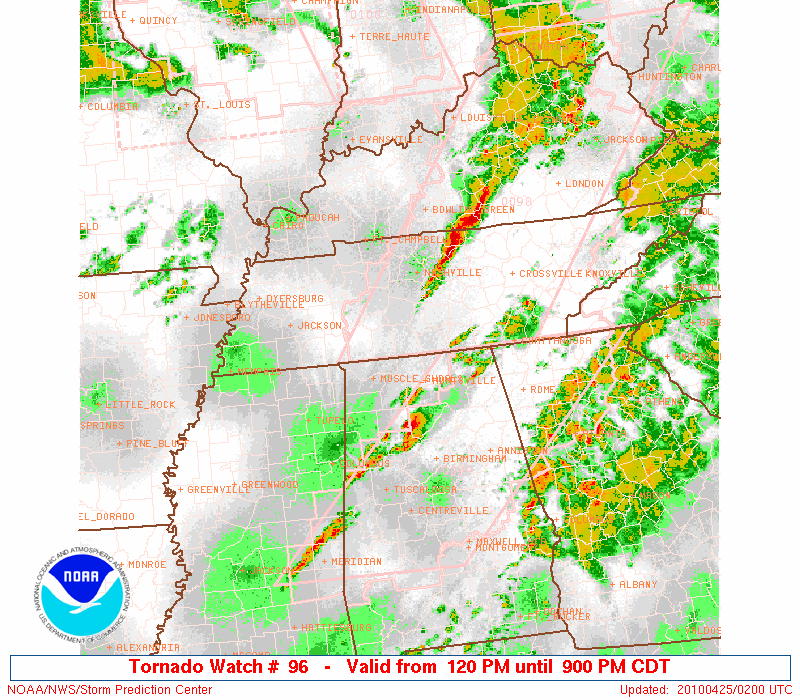 Unless you’ve been under a rock for the past 48 hours, you’ve heard about the storms that wreaked devastation throughout the Southeast this weekend (mainly Mississippi—we’ve heard from all of our Mississippi relatives, and they’re safe). Most of us who live in Nashville, who’ve been through several major tornado events, spent the day near the TV and/or radio keeping up with the weather. I decided that I’ve lived in “Dixie Tornado Alley” long enough when I can take one look at the radar and tell you exactly where there’s possibility of rotation just by how the storm bands bulge and curl and by the colorations in them before the meteorologists put the symbols up on them.
