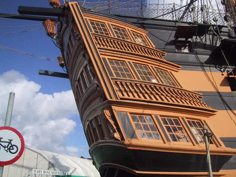 In this image, you can actually see that, contrary to the line drawing above, the beakhead extended quite far from the main body of the ship and was floored with open grating.