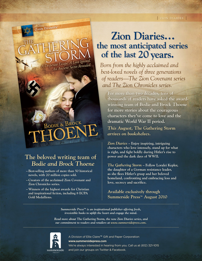 I stopped by the Summerside Press booth when I saw Tricia Goyer was signing. I know my friend Ruth loves stuff set during WWII, so I wanted to pick up a copy of Tricia Goyer’s latest for her. (And who could pass up a book co-authored by someone with the first name Ocieanna? ;-)) While I was there, I had a great conversation with Summerside editor Susan Downs who offered me a copy of . . .