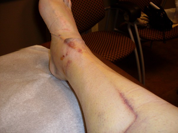 Honestly, I’ve seen worse. My first thought when seeing the pictures is that it could have looked much, much worse. Although that’s more of your leg than I ever thought I would see. 🙂