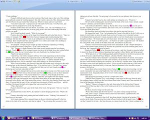 When I was writing the Ransome series, it was helpful for me to listen to Jane Austen’s books on audio to get the patterns of the language engrained in my head. However, when I’m writing my contemporaries, I’ve learned it’s better if I don’t read fiction while I’m writing them, because it not only distracts me, it starts messing with my voice. I’ve noticed this especially since I started editing more fiction than nonfiction—after finishing my monthly editing project in the fiction series I edit for Guideposts, when I go back and re-read what I wrote during the two weeks I work on the editing project, I find that I start to write more like the authors whose work I edit rather than the way I prefer to write. I tell more and I use use more passive language and more adverbs. My writing looks like this: