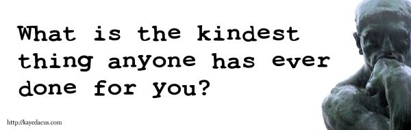 The kindest thing anyone ever did for me was when my aunt paid for me to take a writing course with the Christian Writer’s Guild. I was unemployed at the time and feeling a little directionless, and she saw my writing potential and encouraged me.