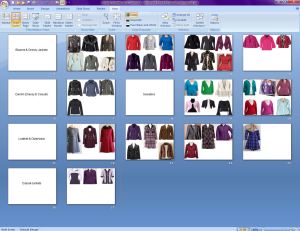 Wow, that’s so cool! I love seeing all those fantastic outfits. It reminds me of a game I had when I was a little girl (in the 60’s uggh) called Fashion Plates – it was so much fun to design out fits and color them, too! I especially like your jewel tone outfits. Do you shop at Avenue?