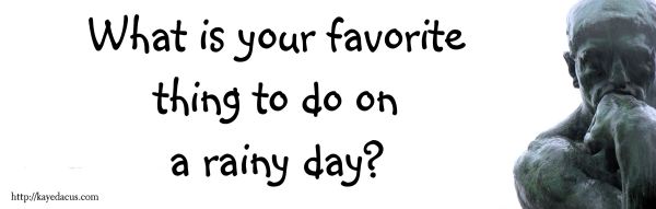 I love rainy days, even thunder and lightening. I bake cookies and eat them warm with a glass of milk. Turn off the radio or TV and listen to the rain.