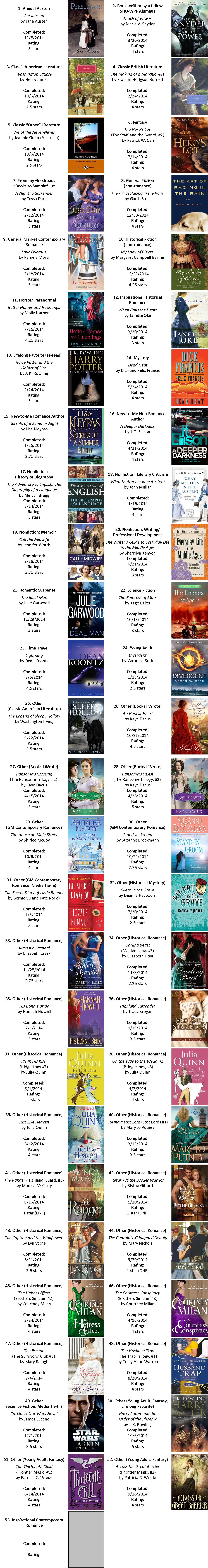 I only failed to complete one category—contemporary inspirational romance. I had it on my Kindle before I left home for Christmas break, but I wasn’t able to get around to it.