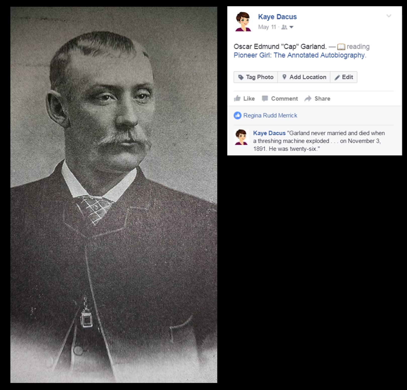 An interesting thing that LIW did in the novels (possibly at her publishers’ request???) was to make Almanzo younger—closer to her own age. IRL, he was 10 years older than she and already old enough to file his own claim by the time he came to De Smet. In the novels, she shaved about five or six years off and had him lie about his age so he could file a claim. This makes sense for the audience she ended up writing for—by the time the novels in which he features as the romantic interest came out in the early 1940s, society had already moved away from the idea that it would be appropriate for a 25-year-old man to be paying romantic interest to a 15-year-old schoolgirl.