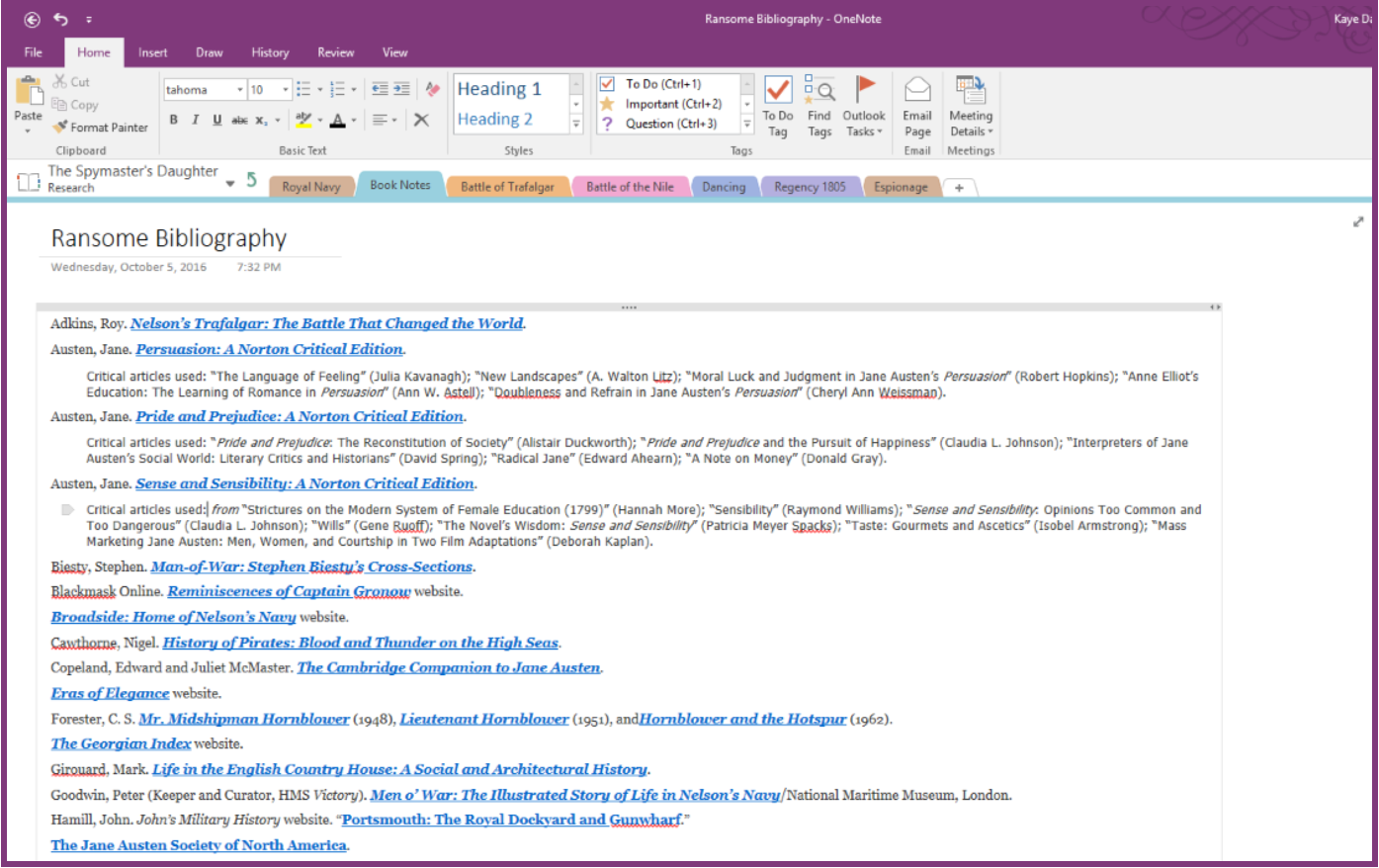 How? Well, my story is meant to be the start of a series so keeping track of the characters would be helpful rather than trying to remember them all. And noting my historical sources is important so I don’t have to find them later.