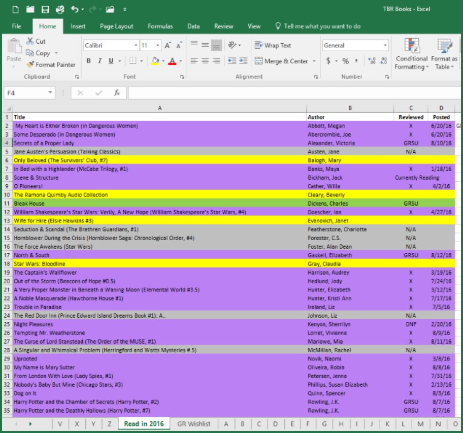Reading Lists (books to read for fun; books in my genre for critical reading/study; research books; craft books; nonfiction; devotionals—I use a combination of Goodreads and Excel for this)