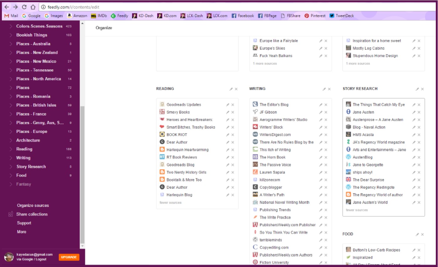 Blogs (those to read daily, weekly, or occasionally—for fun, for information, for research, for Pinterest obsessions… I use Feedly for this)