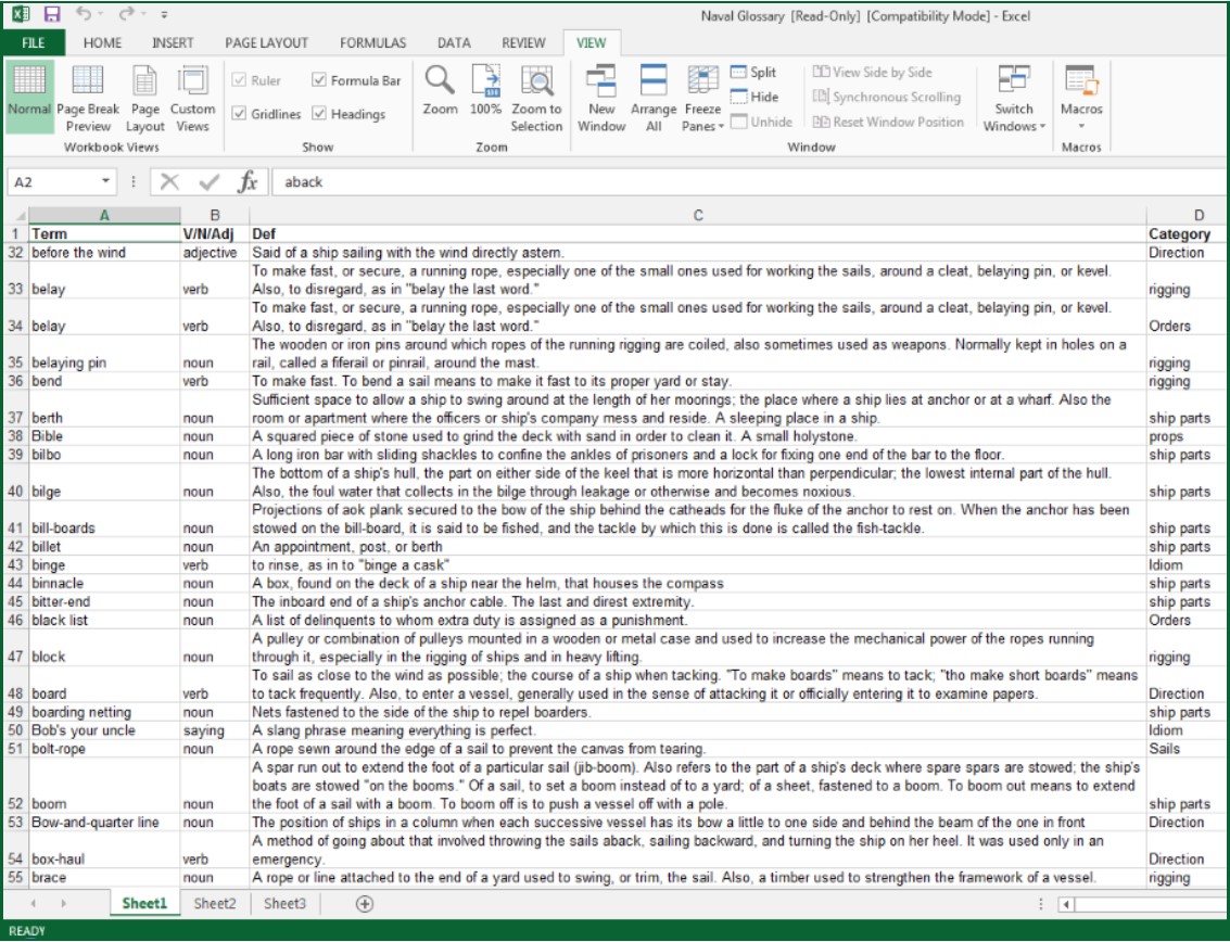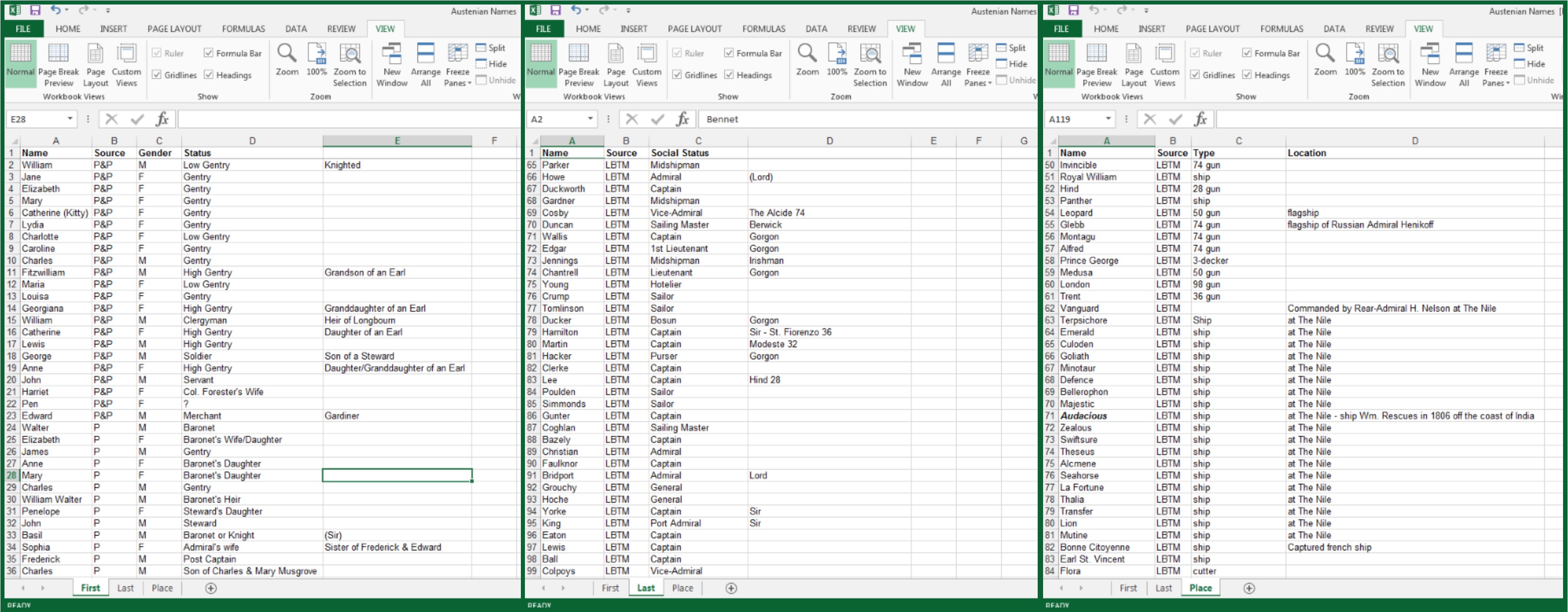 (Lists of names from Jane Austen’s books as well as from some of my research books, such as Life Before the Mast.)