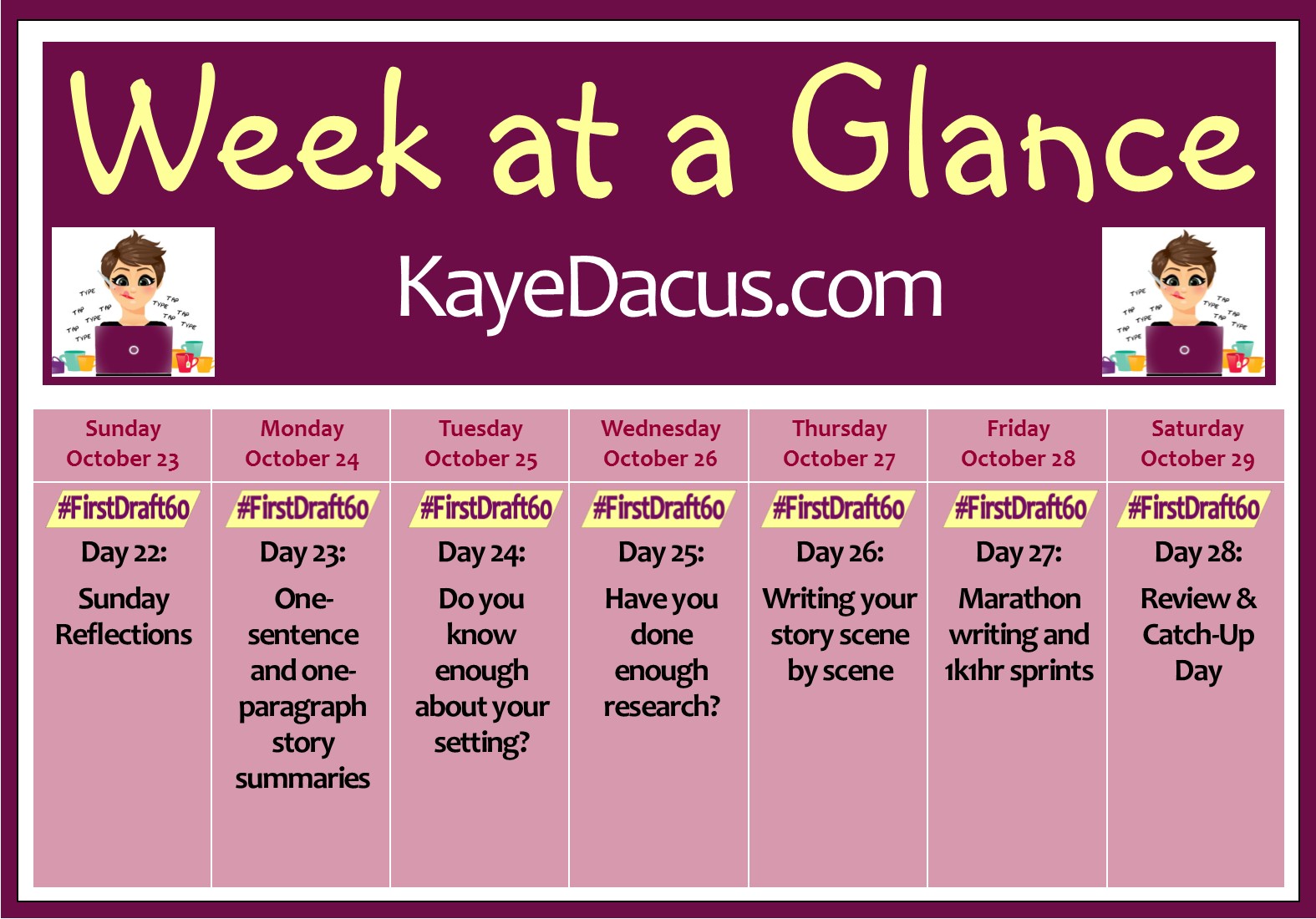 - #FirstDraft60 Day 21: Saturday Catch-Up & Review Day #amwriting #nanoprep #nanowrimo | KayeDacus.com