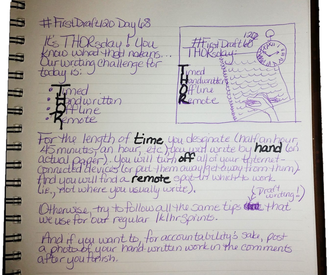 #FirstDraft120 Day 68: It’s THORsday! #amwriting #1k1hr #handwriting
