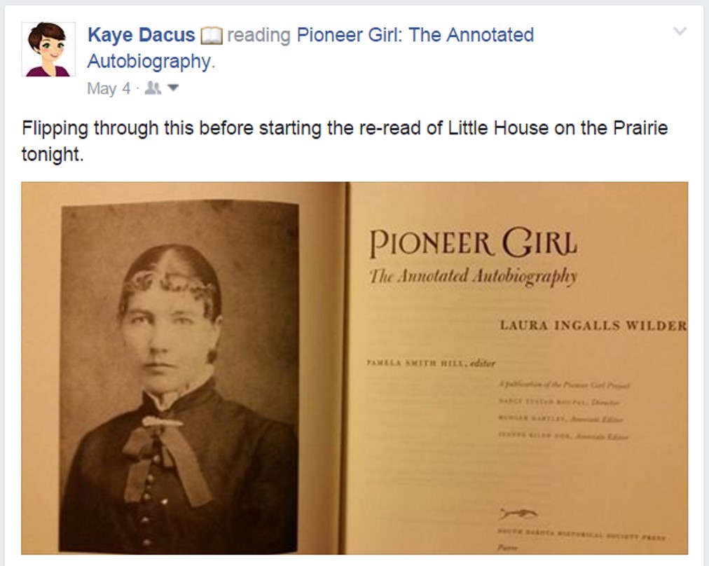 And then a few years ago, the book Pioneer Girl: The Annotated Autobiography came out. It took me a couple of years to get around to it, but last year, since I hadn’t re-read the LH series in many, many years, I decided it was time. I read the annotated memoir alongside the original series and recalled again why it was such a huge part of my development.
