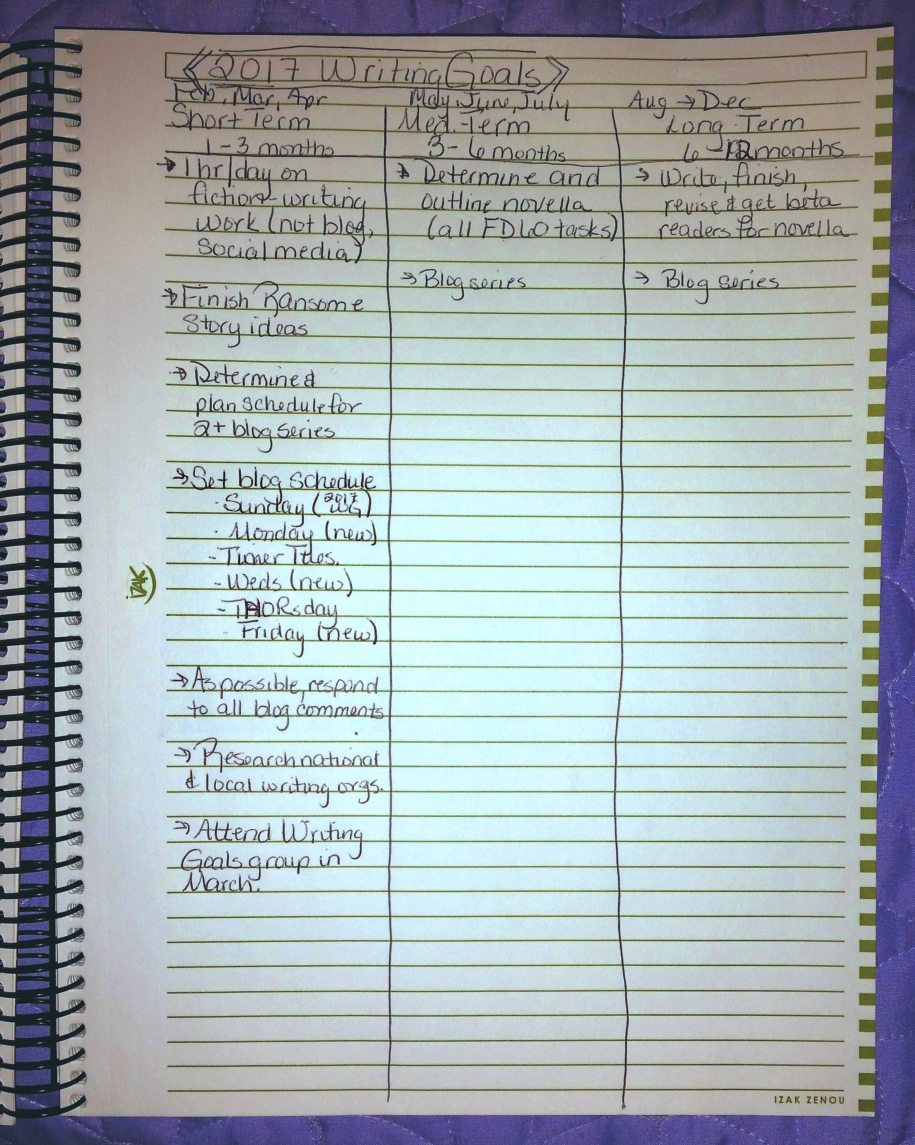 Last night, during writing night with Carol, we brainstormed and started writing our 2017 Writing Goals lists. Here’s what I have so far: