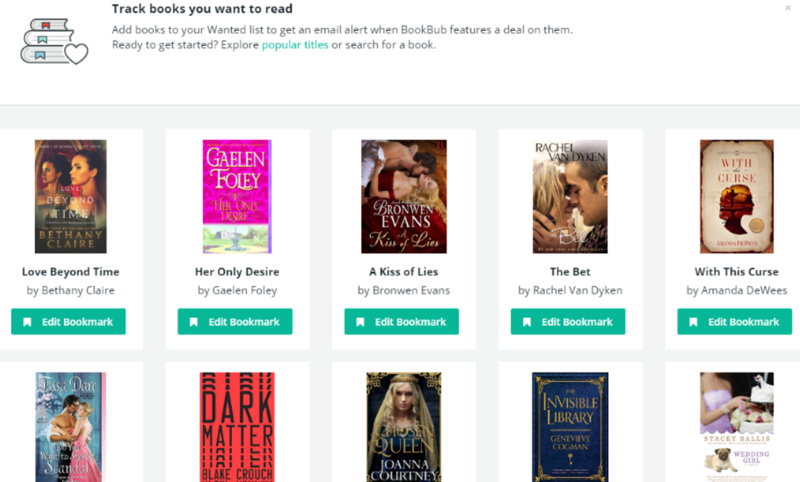 If you’re anything like me and you pretty much live under a rock most of the time, you may have heard of BookBub but you haven’t actually used it. A year or so ago, I clicked on a link to it once because someone mentioned they’d seen in their BookBub update that a few of my books were on sale for $0.99. But when I got to the page and saw that the first thing facing me was a screen that wanted my email address before I could even browse the site to see if I wanted to use it, I clicked right back out.