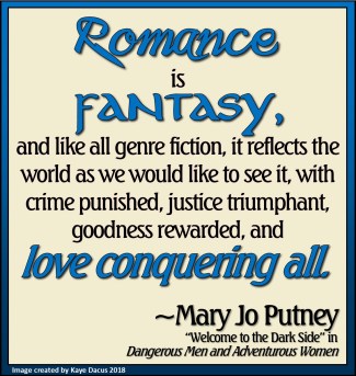 Romance is fantasy, and like all genre fiction, it reflects the world as we would like to see it, with crime punished, justice triumphant, goodness rewarded, and love conquering all. Characters are larger than life, with stronger passions, blacker faults, and brighter virtues. . . .