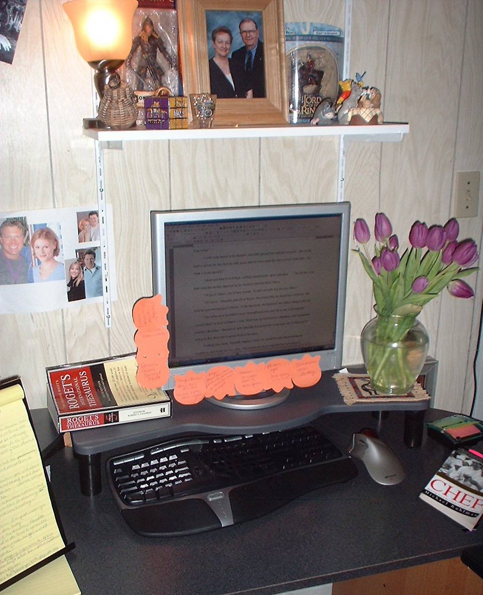 Originally posted in 2009, after I went on a weeklong book-signing tour in Michigan with several other authors from Barbour. While the computer equipment and office/house are different nine years later, pretty much all of this still holds true.
