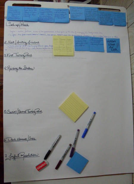 Now, you’ve seen me post the picture of when I use Post-it Notes to do scene cards to work out the direction of a story by figuring out what scenes I’ve already planned for still need to be written: