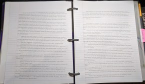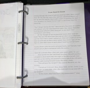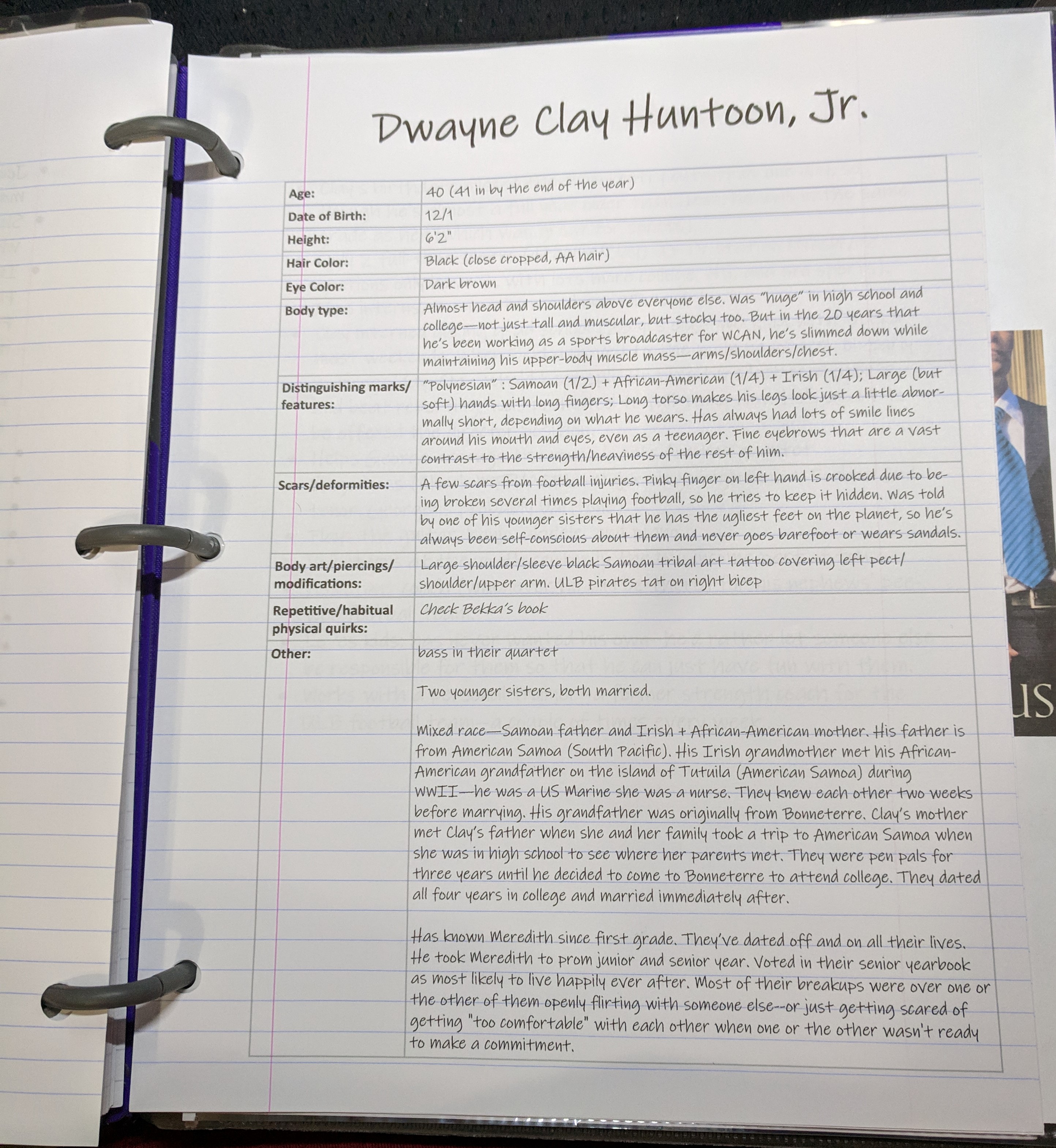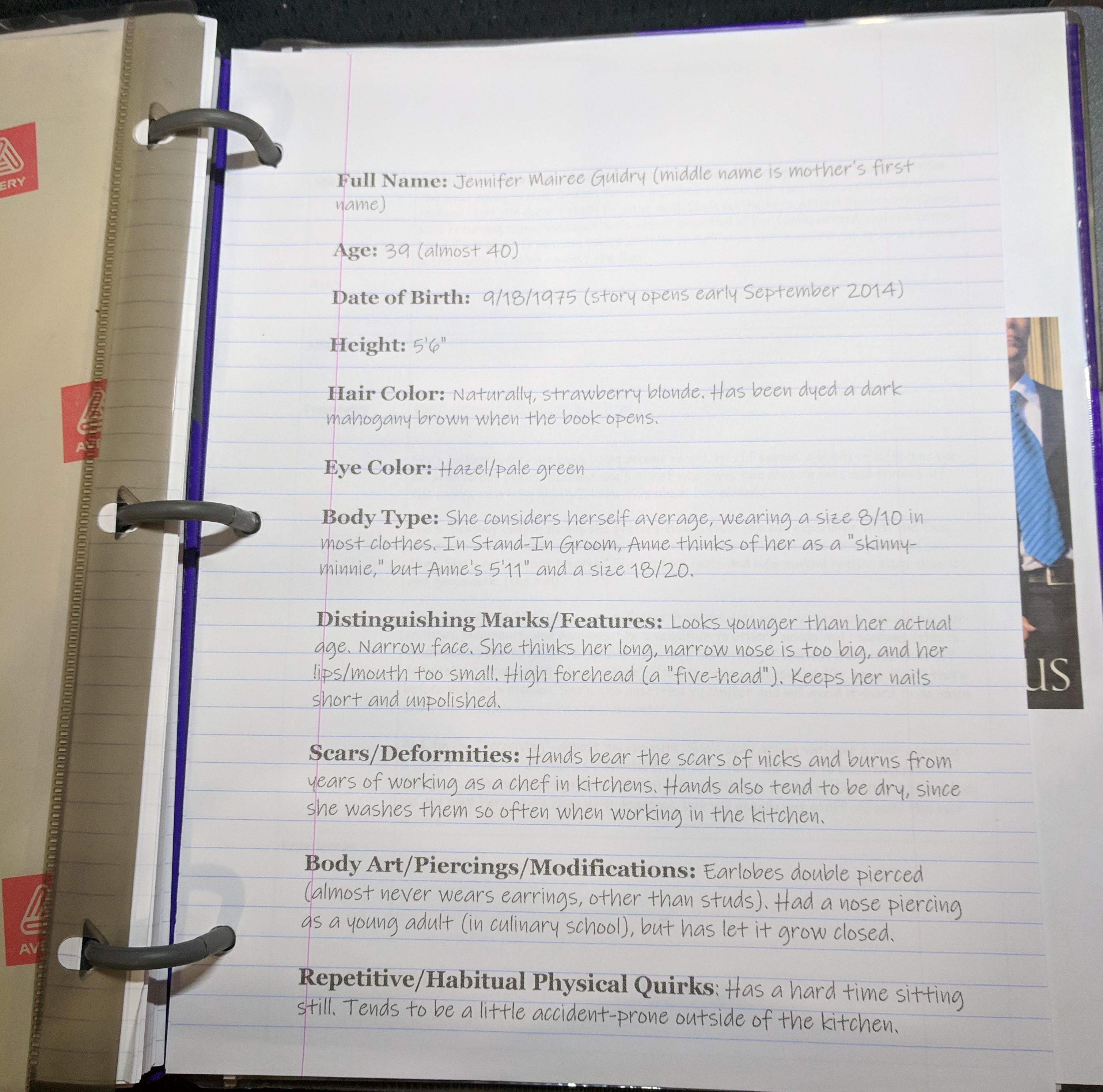 A collage of my templates and the story summary I posted on the NaNo site, followed by everything that I pulled from when I tried writing this story five years ago. And, yes, I printed everything in a handwriting-style font on regular notebook paper.