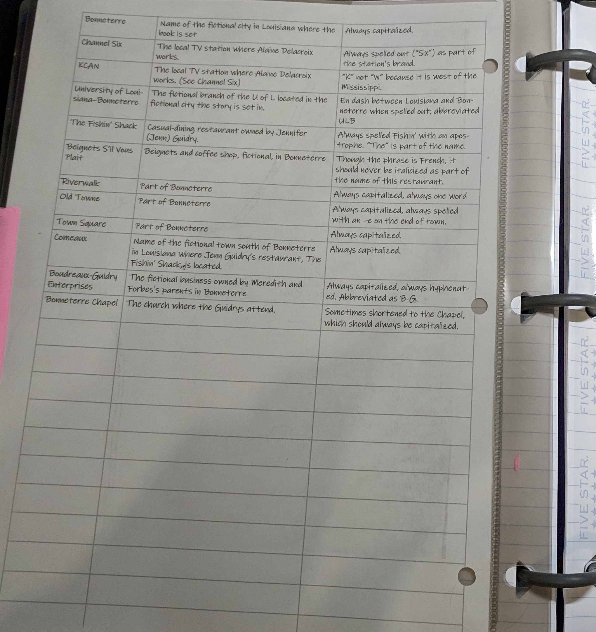 I put everything together in a three-ring binder, along with plenty of blank college-ruled notebook paper. Then I started adding all the pieces: