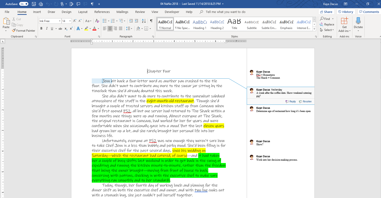 I’ve actually been able to use a lot of the “awful” stuff I wrote years ago, the last two times I tried to write this story. That’s one of the main reasons I printed it all out before I started, so I could do this: